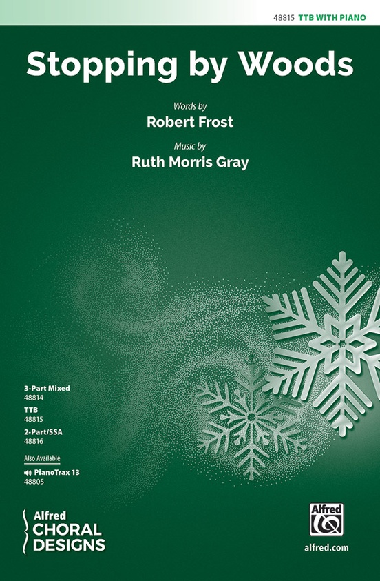 Robert Frost's famous poem describes the woods as “lovely, dark, and deep,” and the same can be said about this appealing setting for winter concerts. The minor key casts a pensive backdrop for the vivid imagery of the text. The composer shows her teaching prowess by sculpting a line that harmonizes easily when sung in thirds and fits together perfectly when echoed from part to part. Developing choirs will appreciate the balance of emotional depth in the words and approachable challenges in the vocal parts. Sing the cue notes to quickly convert the 2-part voicing to S.S.A.