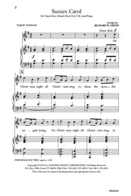 Classic Christmas Carol arranged for mixed chorus (SATB), tenor solo and intricate piano accompaniment.