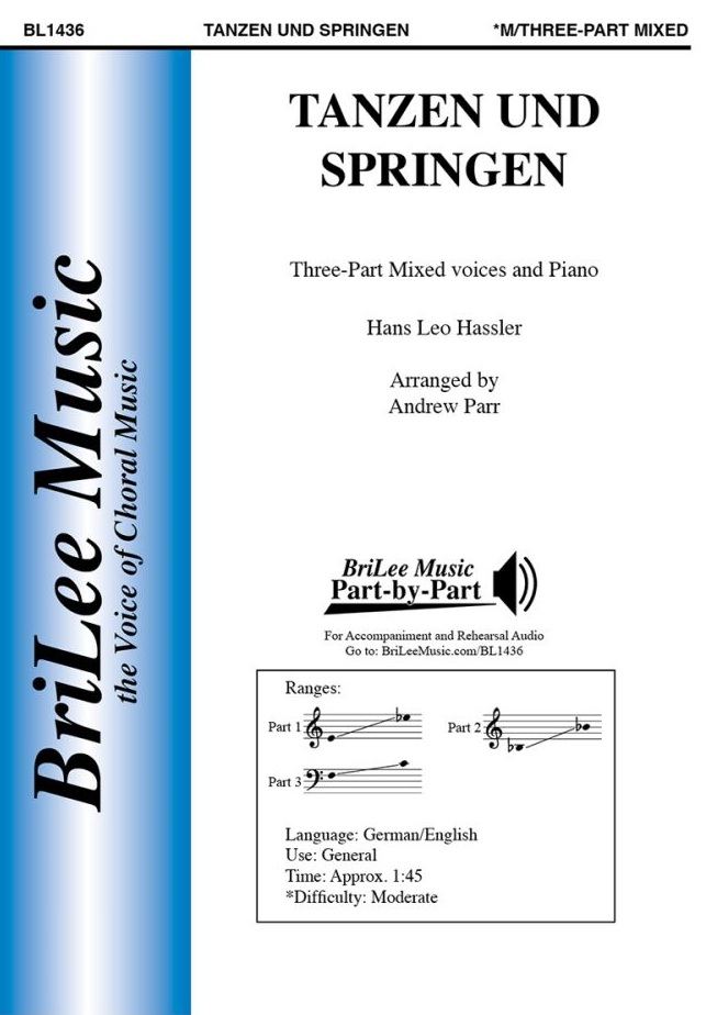 This arrangement of Tanzen und Springen by Andrew Parr, originally by Hans Leo Hassler, is written for three-part mixed choir with clear, accessible part writing ideal for developing ensembles. Bright and buoyant, it offers singers engaging rhythmic energy and plenty of opportunities to showcase crisp articulation and dynamic contrast.