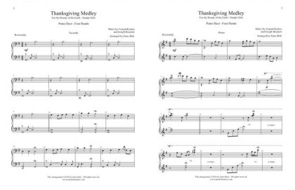 A piano duet with Celtic flavor combining “For the Beauty of the Earth” and “Simple Gifts.” One piano, four hands. Primo and secondo parts are both intermediate level in difficulty. 5 pages for each part, or 12 pages for the combined score.