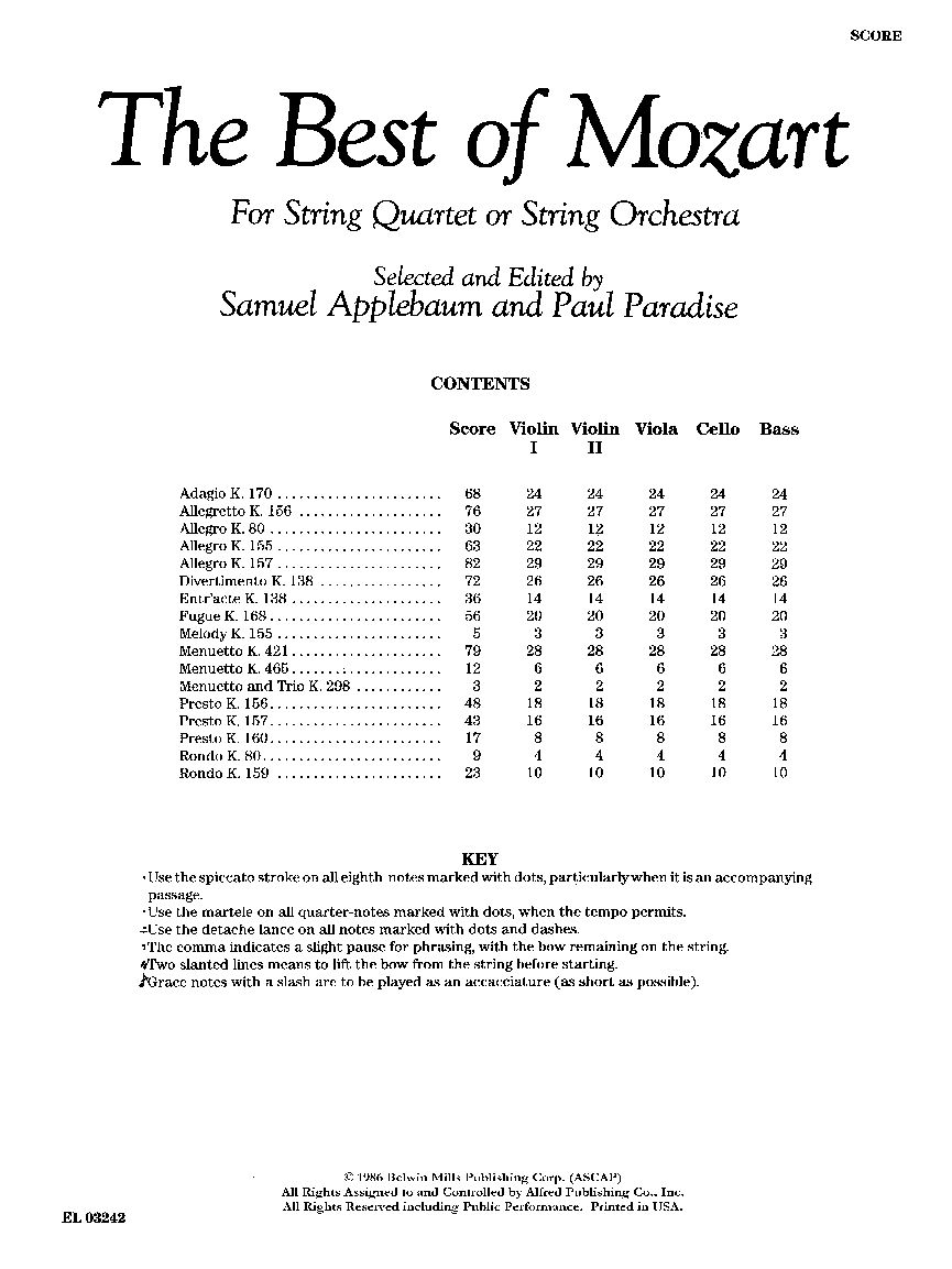 This album is designed to open the door to string quartet playing. The editors have chosen movement from the vast output of Mozart string quartets and assembled them according to the difficulty level. Care has been taken to edit each part with contemporary fingerings and bowings. Selections were chosen to provide each player with a meaningful part, and can serve two purposes: