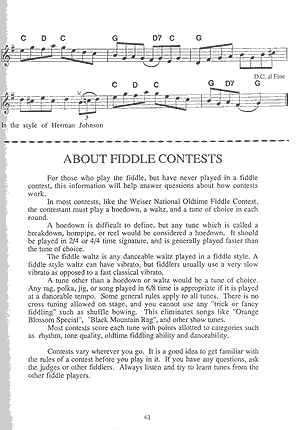 This book was written to be used as a learning tool for beginners who read music. It presents very easy tunes to learn the basics of bowing and style, and progresses in difficulty with each tune. All of the arrangements are renditions that the author plays and has heard other fiddlers play. Many of the tunes are done in the style of Herman Johnson, a five-time National Fiddle Champion. Includes access to online audio.