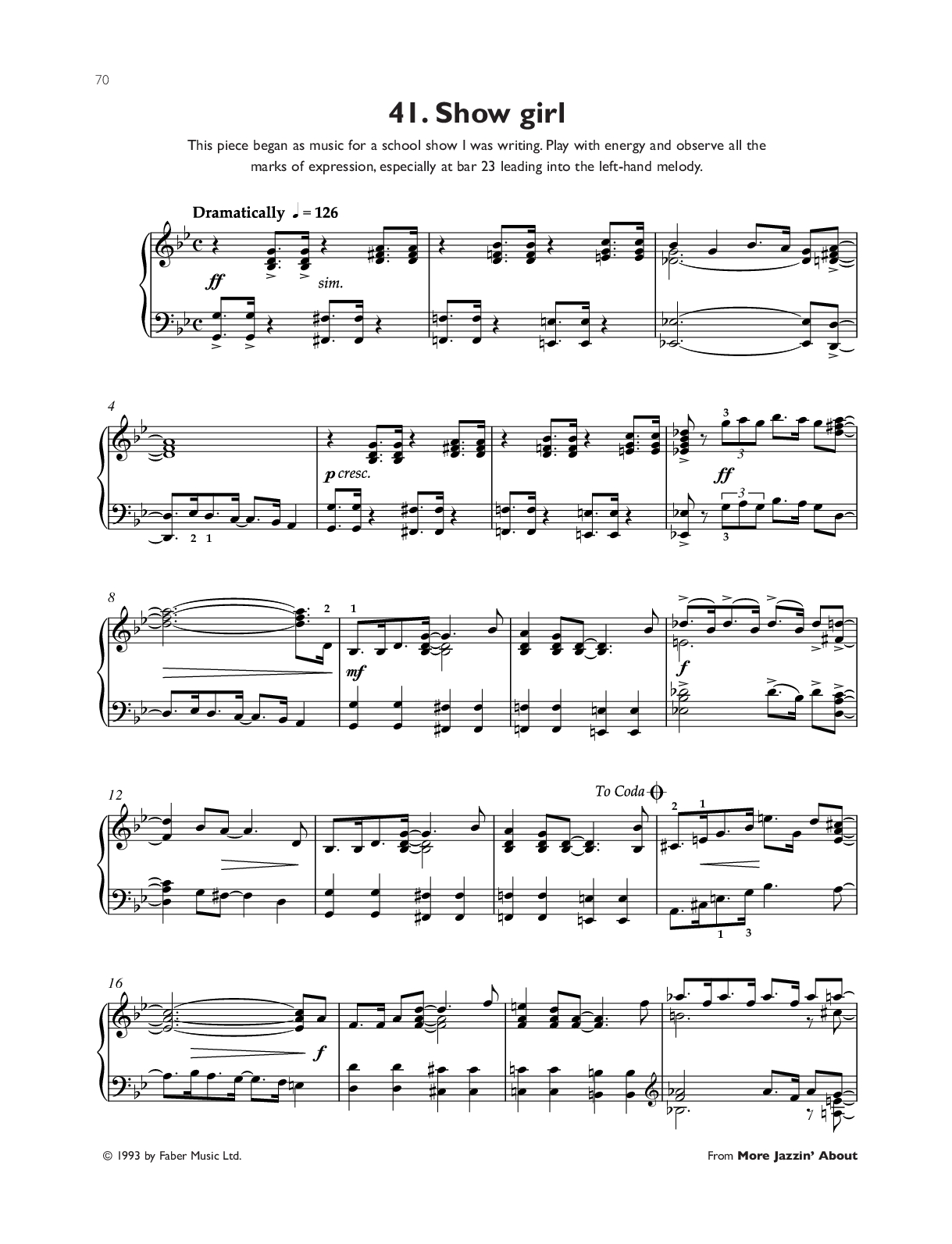 The Jazzin' About Piano Anthology celebrates Pam Wedgwood's best-selling series in a collection of the author's favorite pieces presented progressively for the first time in one volume, from early elementary to intermediate level (Initial-Grade 5). Including six new pieces specially composed for this exciting bumper edition, plus duets and online demonstration audio performed by the composer. So take a break from the classics and get into the groove as you cruise from blues, to rock, to jazz!