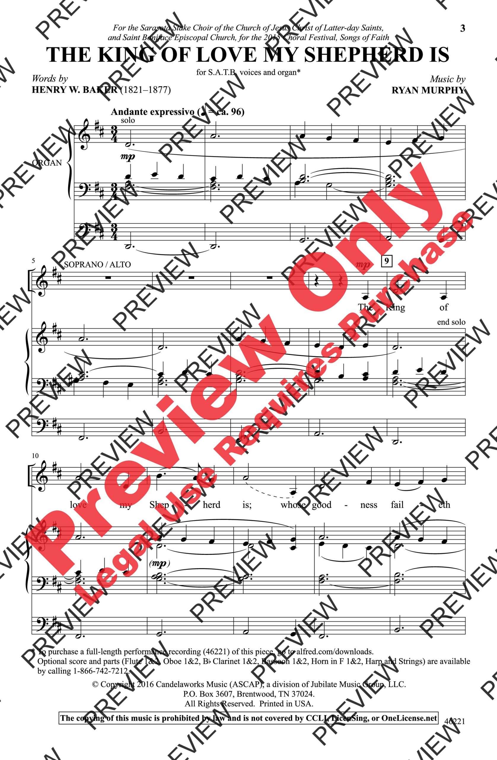 As a paraphrase of Psalm 23, the beloved text by Henry Williams Baker was chosen by Ryan Murphy because of its broad appeal across religious traditions. This piece is versatile and appropriate as an anthem during any time of the liturgical year.