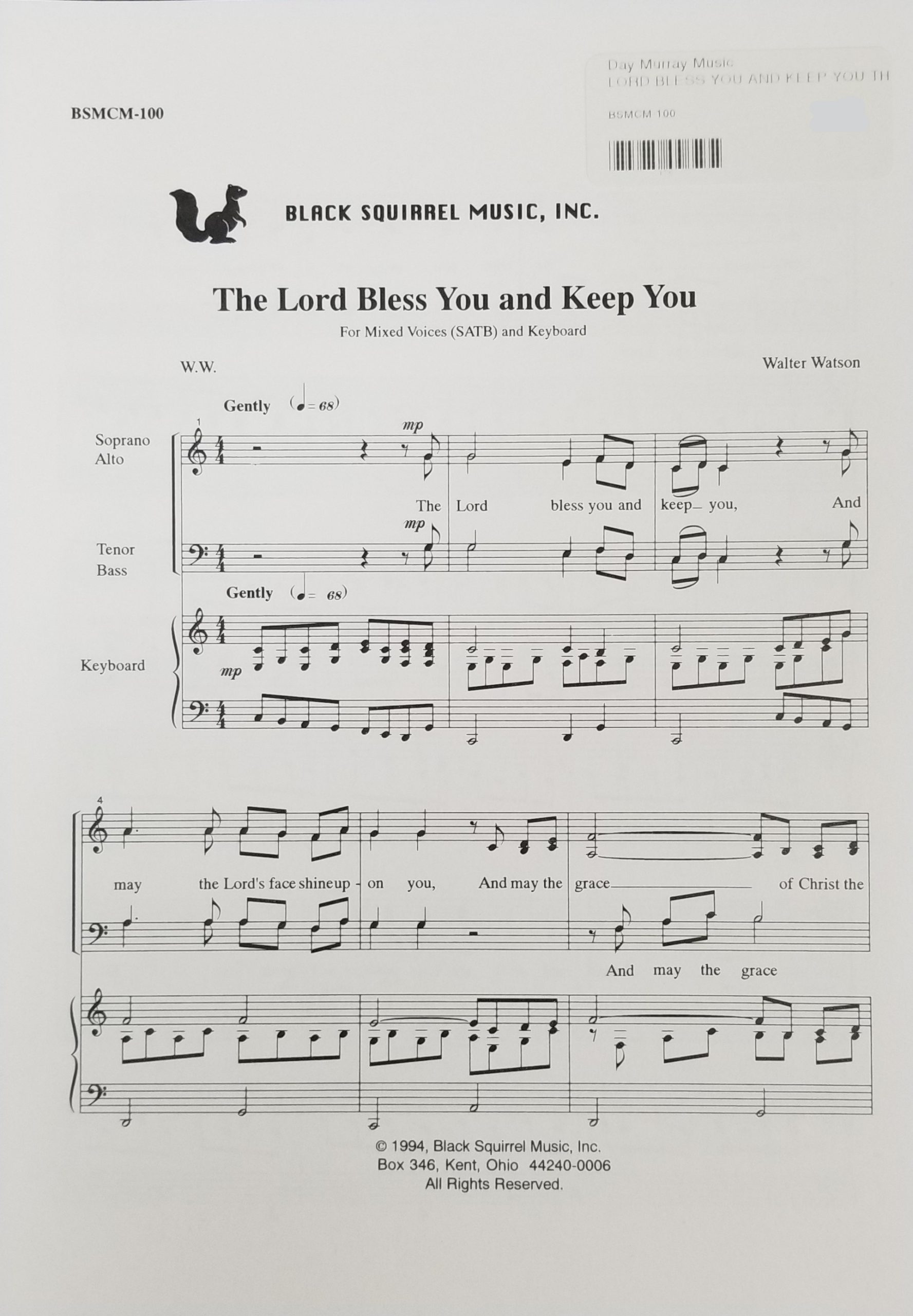 The Lord Bless You and Keep You – SATB (Watson)