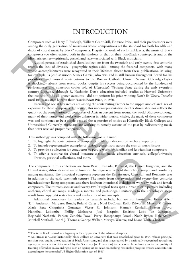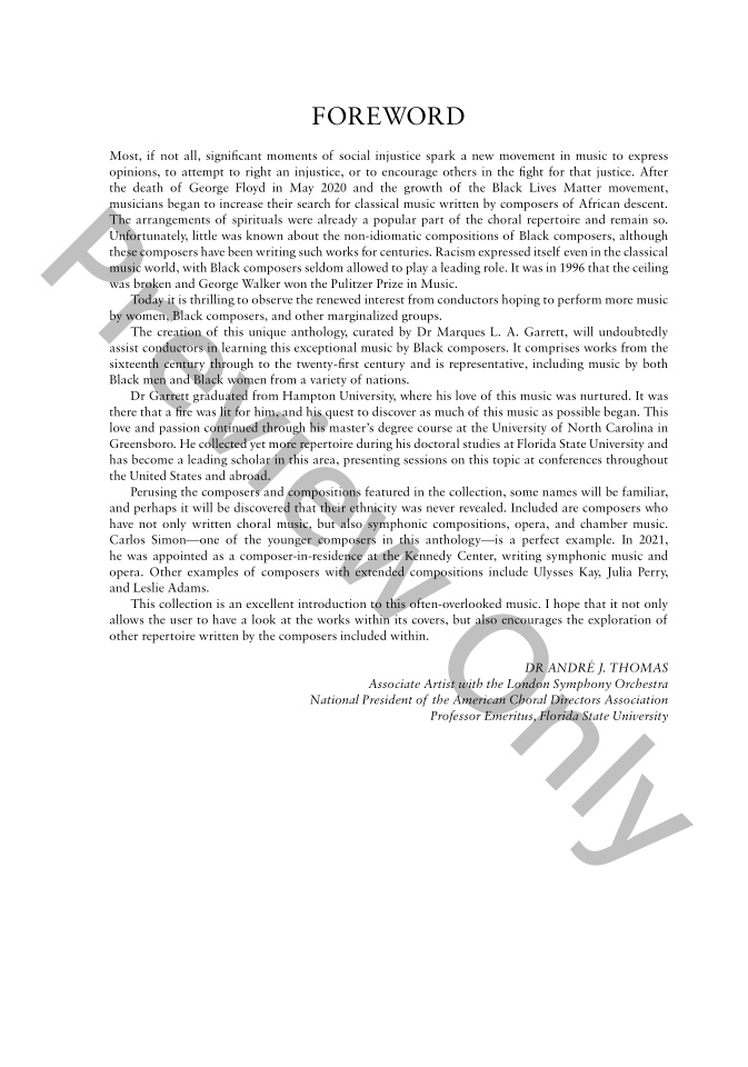 • The Oxford Book of Choral Music by Black Composers is a landmark collection of non-idiomatic compositions from the sixteenth century to the present day, providing a comprehensive introduction to an area of choral music that has been historically under-represented. This unique anthology seeks both to improve representation in the historical canon and to showcase the music of some of the best names in choral music today.
