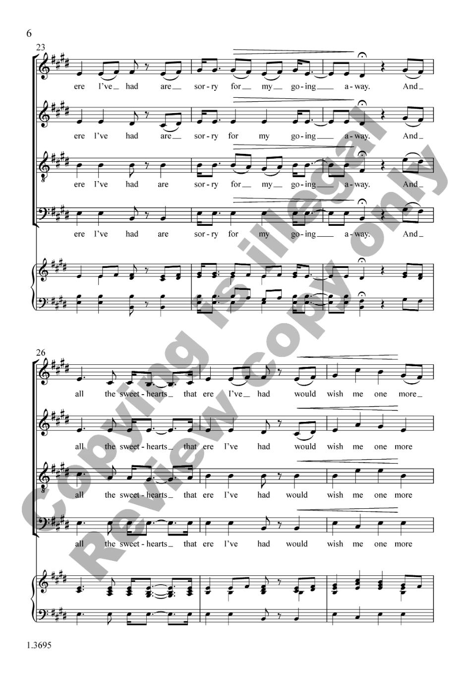 An accessible setting of the traditional Irish tune that is a perfect closing song for a concert. Appropriate for an end-of-the-year/season performance.