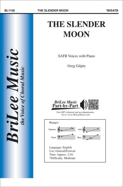 With gently soothing harmonic colors, Greg Gilpin captures the mystery of the slender moon in this wonderful setting. Inspired by the descriptive text found in poet Joseph S. Cotter Jr's. poem “Night Winds,” this work will wow audiences and choirs alike. Also available for Treble Voices (BL1009) and Three-Part Mixed Voices (BL1141).
