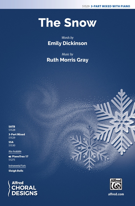 Crisp eighth-note figures and steady sleigh bells create the feeling of a jaunty sleigh ride while contrasting legato sections evoke the chill of blowing snow. Sopranos exclaim the title over and over as others interject with words from Emily Dickinson's wintertime poem. Some repetition makes for ease of learning, but the unexpected harmonic progression keeps things fresh.