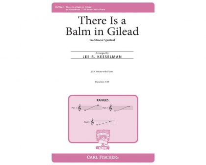 From the opening solo and duet passage to the a cappella three-part refrain, Lee Kesselman uses many textures in his transparent arrangement of this beloved African-American spiritual. Sure to touch the heart, inspire, give hope, and challenge, There is a Balm in Gilead is perfect for concerts and festivals.