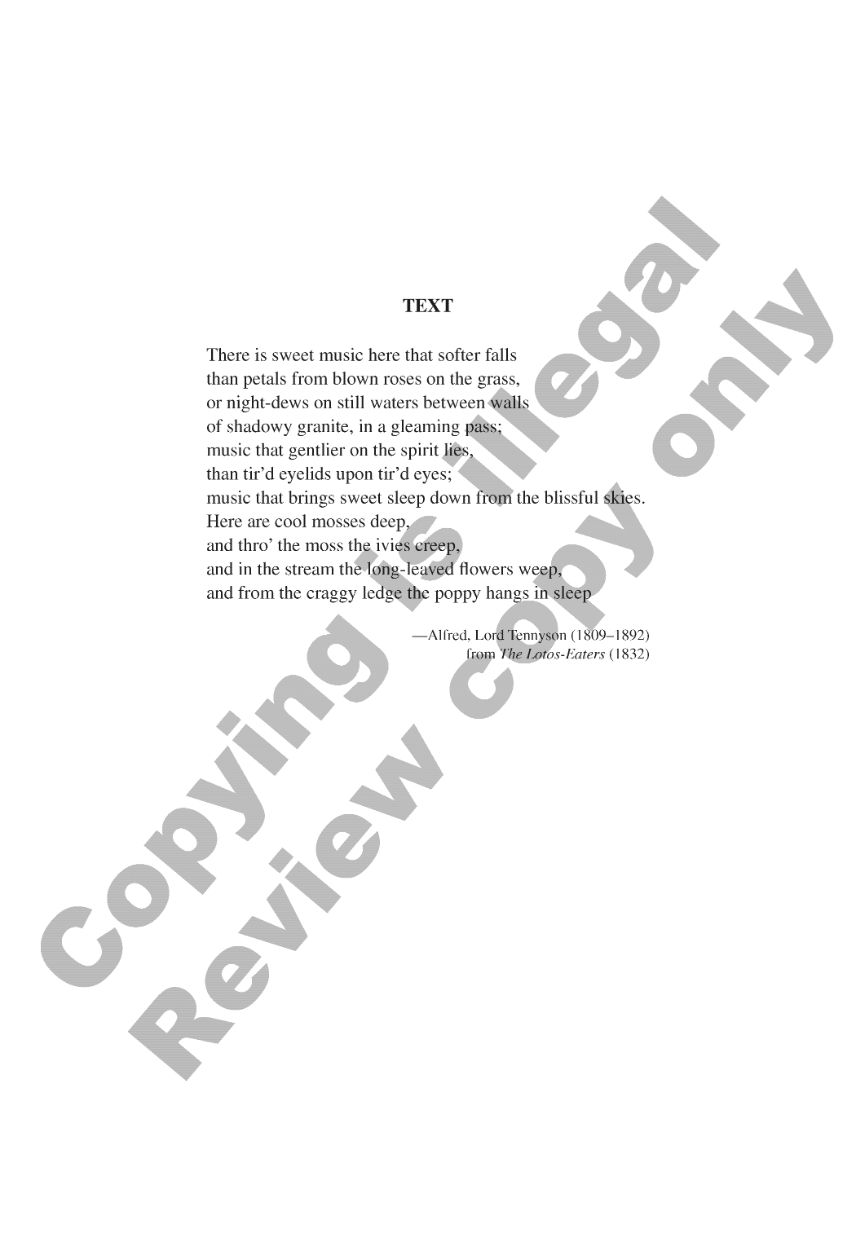 Tennyson's beautiful poem is set in a lyrical and reflective way. May be performed as part of a trilogy of Tennyson poems.