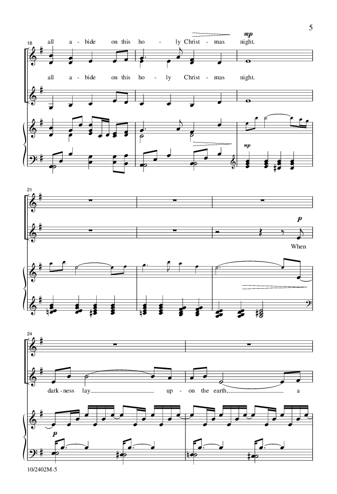 Reflecting on the tender setting of our Savior's birth, easy choral writing and a gentle keyboard part enhance the story of that holy night long ago.