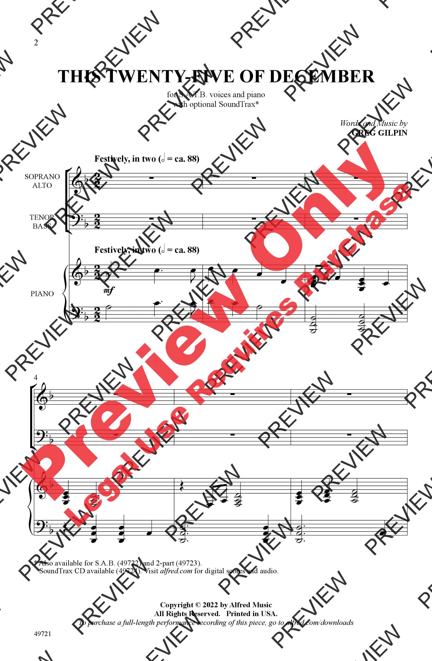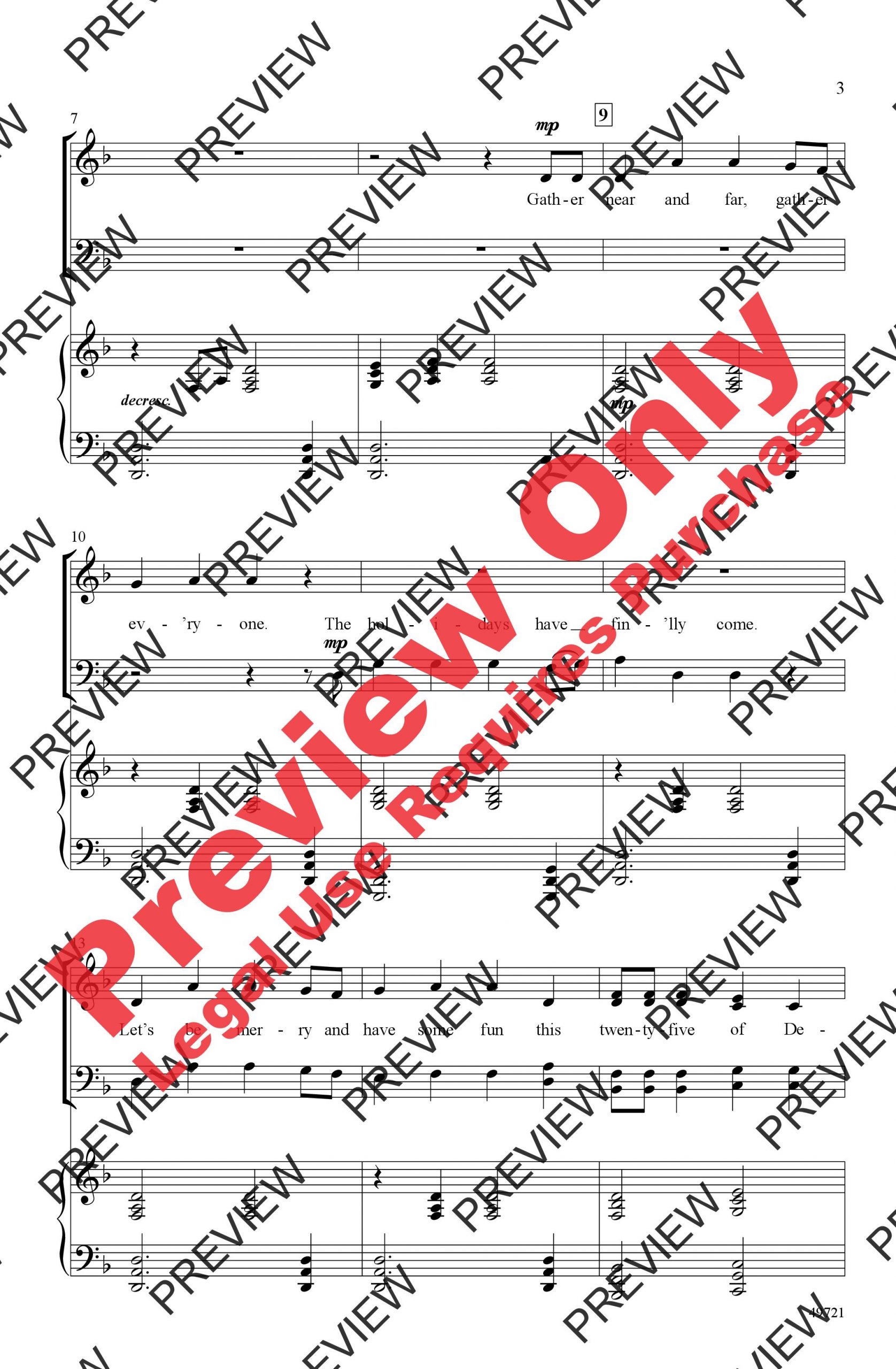 Merry minor key singing and dance-like rhythms! This rousing Greg Gilpin original sounds something like Irish folk music or perhaps a sea chantey. It's a festive holiday text complete with trimming the tree, decking the halls, plus plentiful “fa la la's” and “noel's.” Feature a mid-range soloist on the softer, slower, introspective moment just before the last spirited refrain. “There's holiday cheer for one and all!”