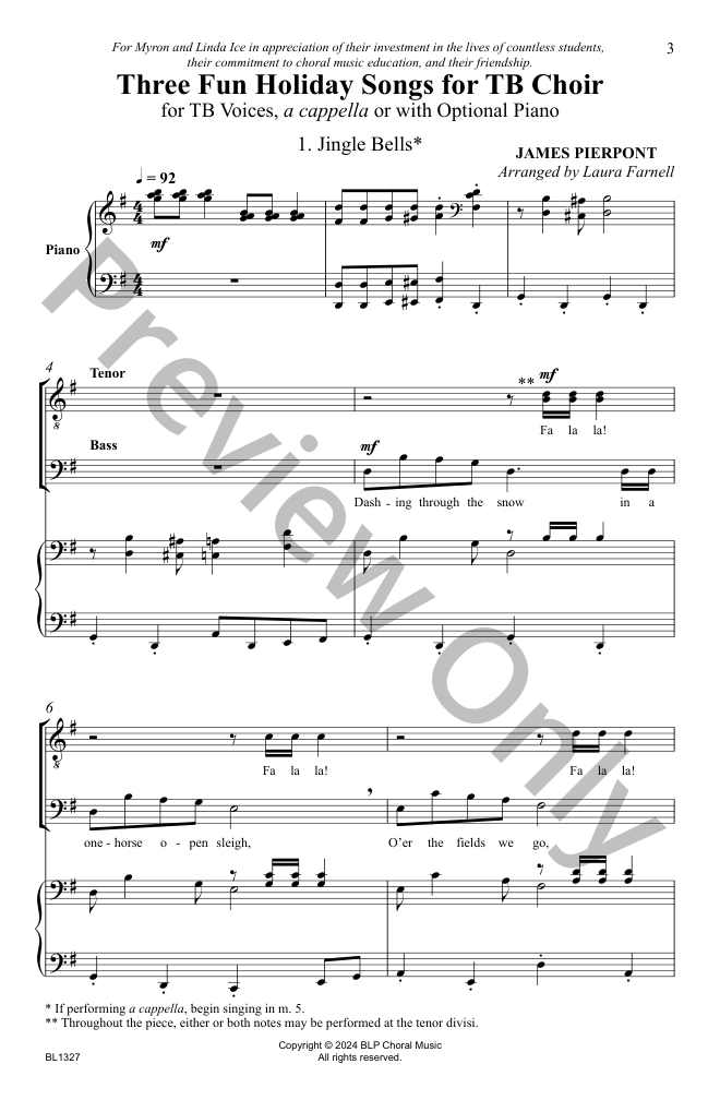 Farnell puts the FUN in “functional” with this accessible set for TB choir or ensemble. Sing one, two, or all three, a cappella or with piano, they are full of “Fa La La La” fun and a new staple for your choral library!