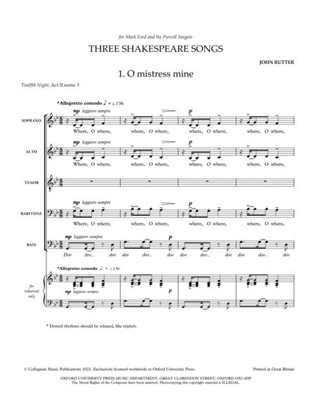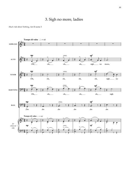 O mistress mine is a jaunty jazz waltz, Be not afeard casts a dreamy spell with dusky sonorities and magical harmonies, and Sigh no more, ladies brings the set to a cheerfully melodious and high-spirited conclusion.