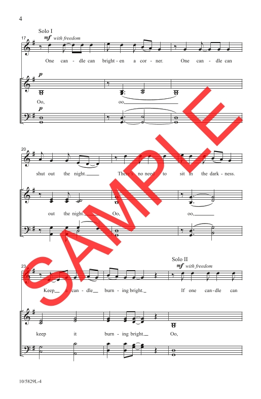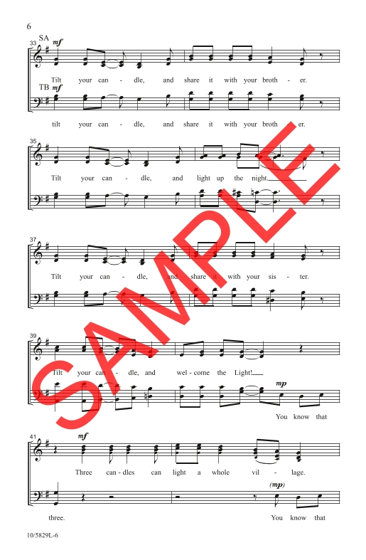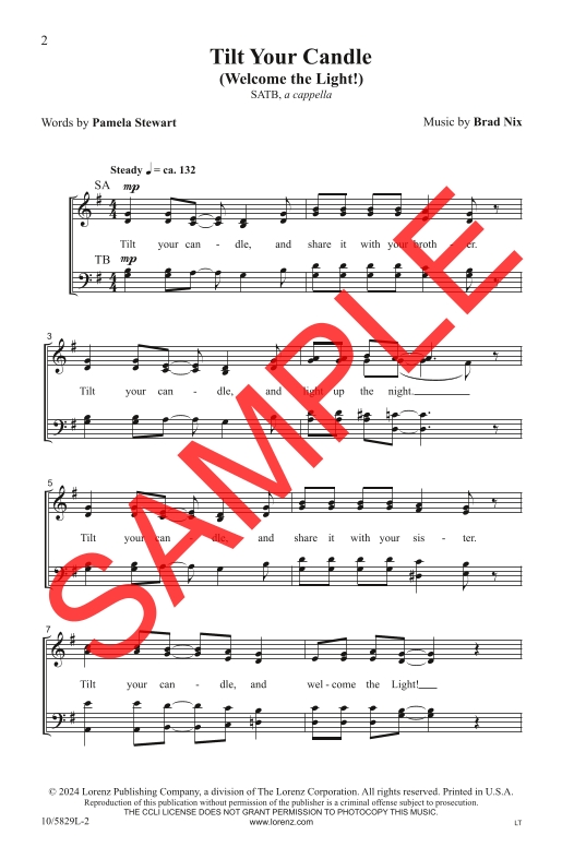 Pamela Stewart and Brad Nix join forces to bring you this joyous Advent spiritual. The idiomatic choral writing features tight vocal harmonies and limited ranges, as well as opportunities for several soloists. Your listeners will be blessed as the choir encourages them to “Tilt your candle and welcome the light!”