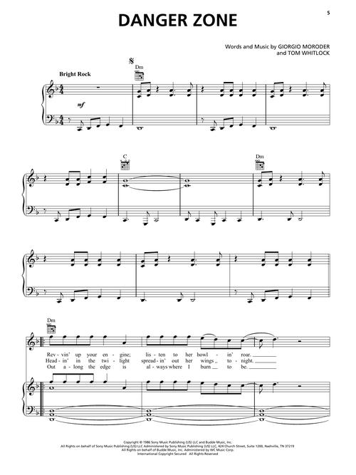 The sequel 30 years in the making, Top Gun: Maverick was worth the wait as audiences flocked back to theaters to see Tom Cruise return to action. Like the original Top Gun, the soundtrack is pivotal to its success and features some of today's top hitmakers as well as the iconic original hit “Danger Zone.” This folio features seven songs from the soundtrack arranged for piano and voice with guitar chord frames.