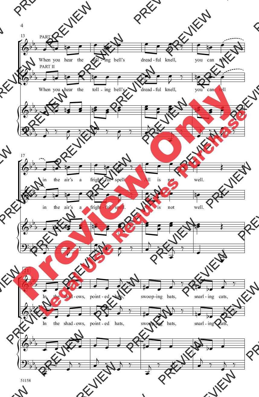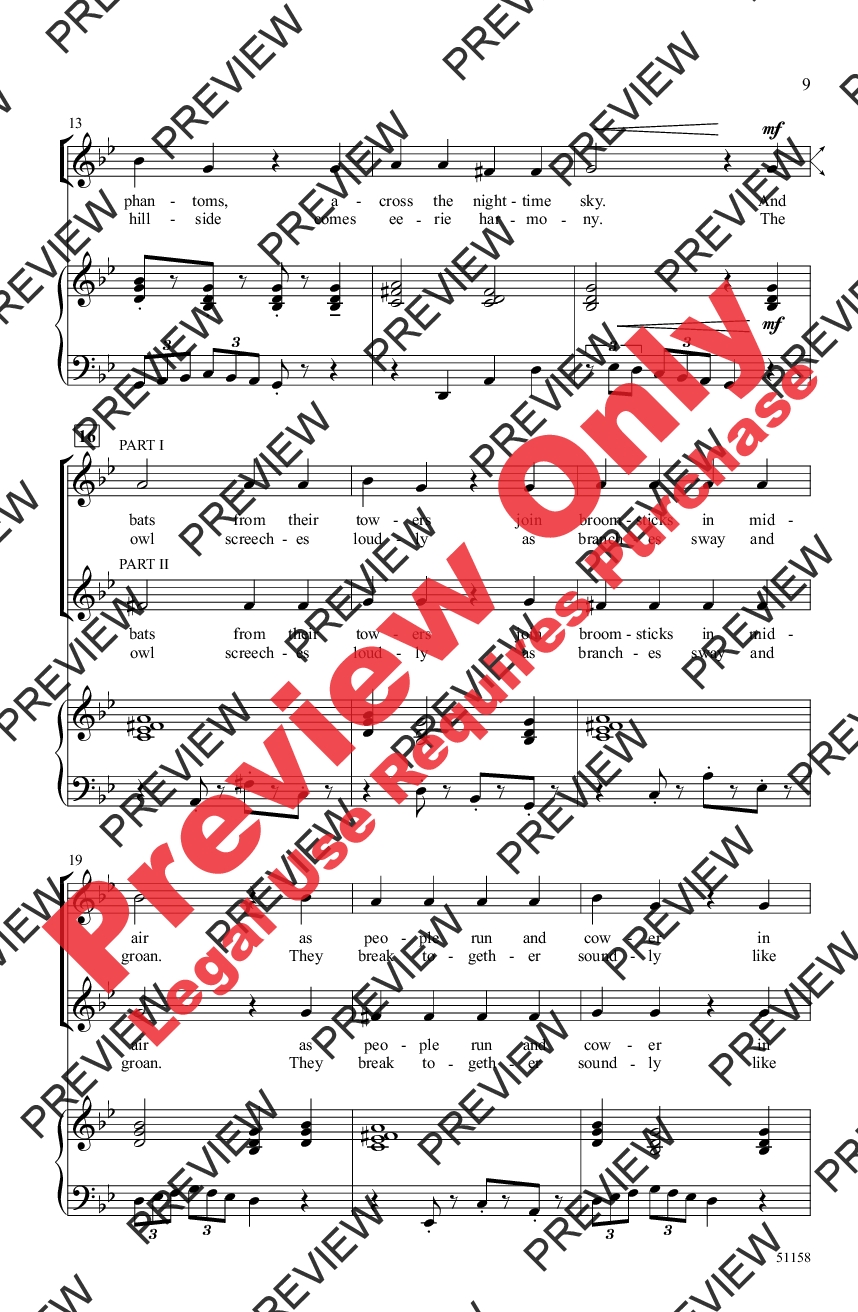 It's a spooky twist on a couple of classical themes! Complete with swooping bats, snarling cats, and all kinds of ghostly imagery, this duo can be sung together or separately for any fall or Halloween performance. Listen for the screeching owl hiding within the spine-tingling SoundTrax accompaniment.