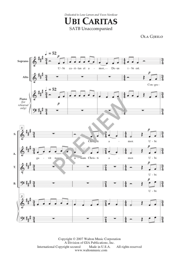 This remarkable setting of the familiar Latin text starts in unison evoking plain chant, and gradually unfolds into wider harmonies and a more modern harmonic language. Not unduly challenging, Ubi Caritas is readily accessible to good high school mixed choirs for concerts or festivals of any nature.