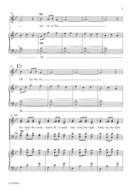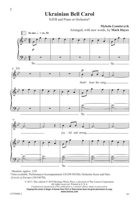 Beginning simply and starkly, the work grows in intensity to an impressive climax, and then gradually returns to the more subdued mood with which it began. Drawn from Hayes's “International Carol Suites”, this staple of Christmas choral literature also incorporates vibrant, original text. “Hark, hear the song, joyful and strong, music so fair, filling the air. ”