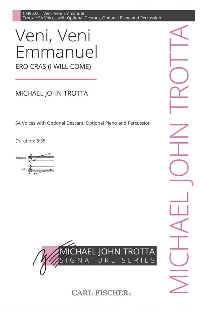 Trotta conceived this well-known Latin text as a dialogue between supplicants and the Creator. He masterfully juxtaposes a personal longing for something still to come with the steadfast assurance of something ever-present, yet not always seen. While the original theme is associated with the Christmas season, the wider theme of longing for something greater is universal to the human condition and allows this piece to be programmed throughout the year. An exciting piece for any concert, contest, or festival. Also available for SATB voices (CM9418), SSA Voices (CM9436), Three-Part Voices (CM9546), and TTBB Voices (CM9564).