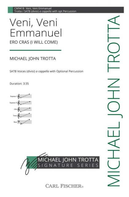 Trotta conceived this well-known Latin text as a dialogue between supplicants and the Creator, a combination of old and new. He masterfully juxtaposes a personal longing for something still to come with the steadfast assurance of something ever-present, yet not always seen. While the original theme is associated with the Christmas season, the wider theme of longing for something greater is universal to the human condition and allows this piece to be programmed throughout the year. A fitting piece for any concert, contest or festival.