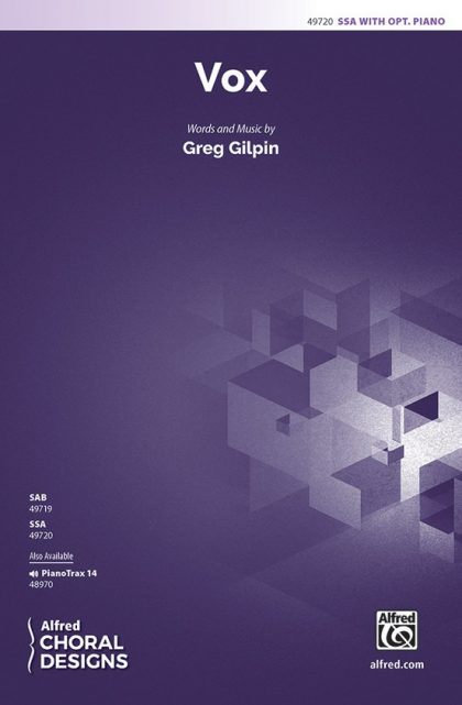 Enjoy the bright energy of ¾ felt in one. This rhythmic Greg Gilpin original may be accompanied by shaker alone or the optional keyboard part. Vibrant vocables have no literal meaning, but virtually bubble with joy—there's a smile built in. A complete form with contrasting sections, varied choral articulations, ostinatos, pedal tones, drones, the works. It's an action-packed musical journey, a colorful collage for the ears.