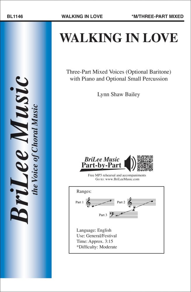Walking in Love depicts the goodness and power of love. With catchy rhythms and interesting chordal harmonies, Bailey's original piece emphasizes “Where there is love, there is light”. A great teaching piece and appropriate for year-round concerts. Also available for SSA Voices (BL1121).