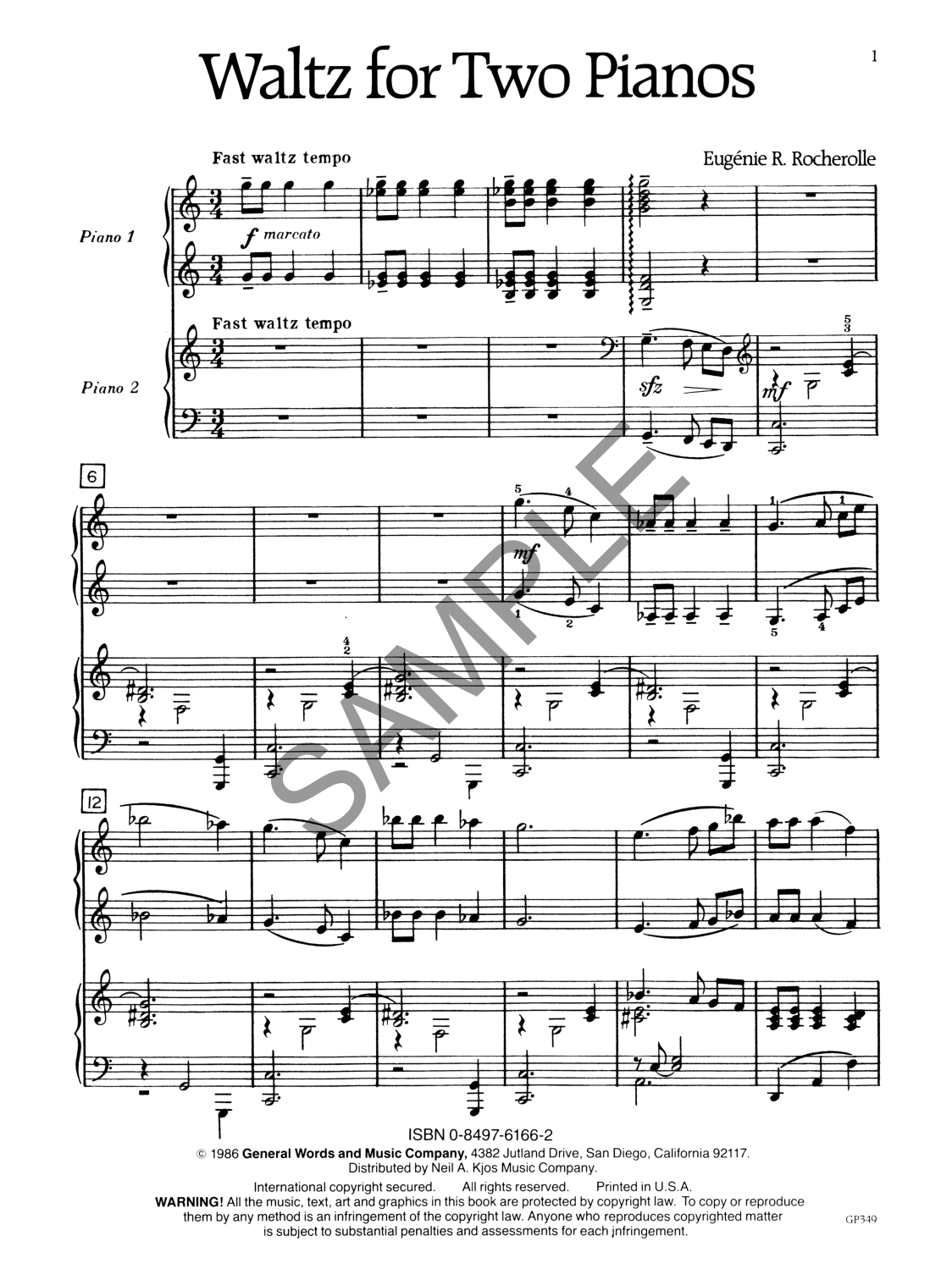 Melody and accompaniment are evenly distributed in this dynamic, fast-paced romantic-style Waltz. Features a dramatic conclusion. Two scores are included.