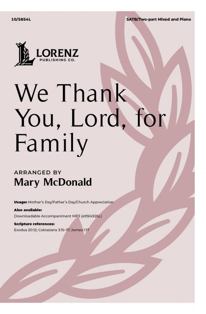 A sweet spirit pervades this anthem, thoughtfully crafted for Mother’s Day, Father’s Day, or even Church Appreciation Sunday. Mary McDonald weds the beautiful folk melody SALLY GARDENS with an original lyric that brims with thankfulness. Flexibly conceived to be sung with an SATB or Two-part Mixed choir, this is a piece you will return to year after year.