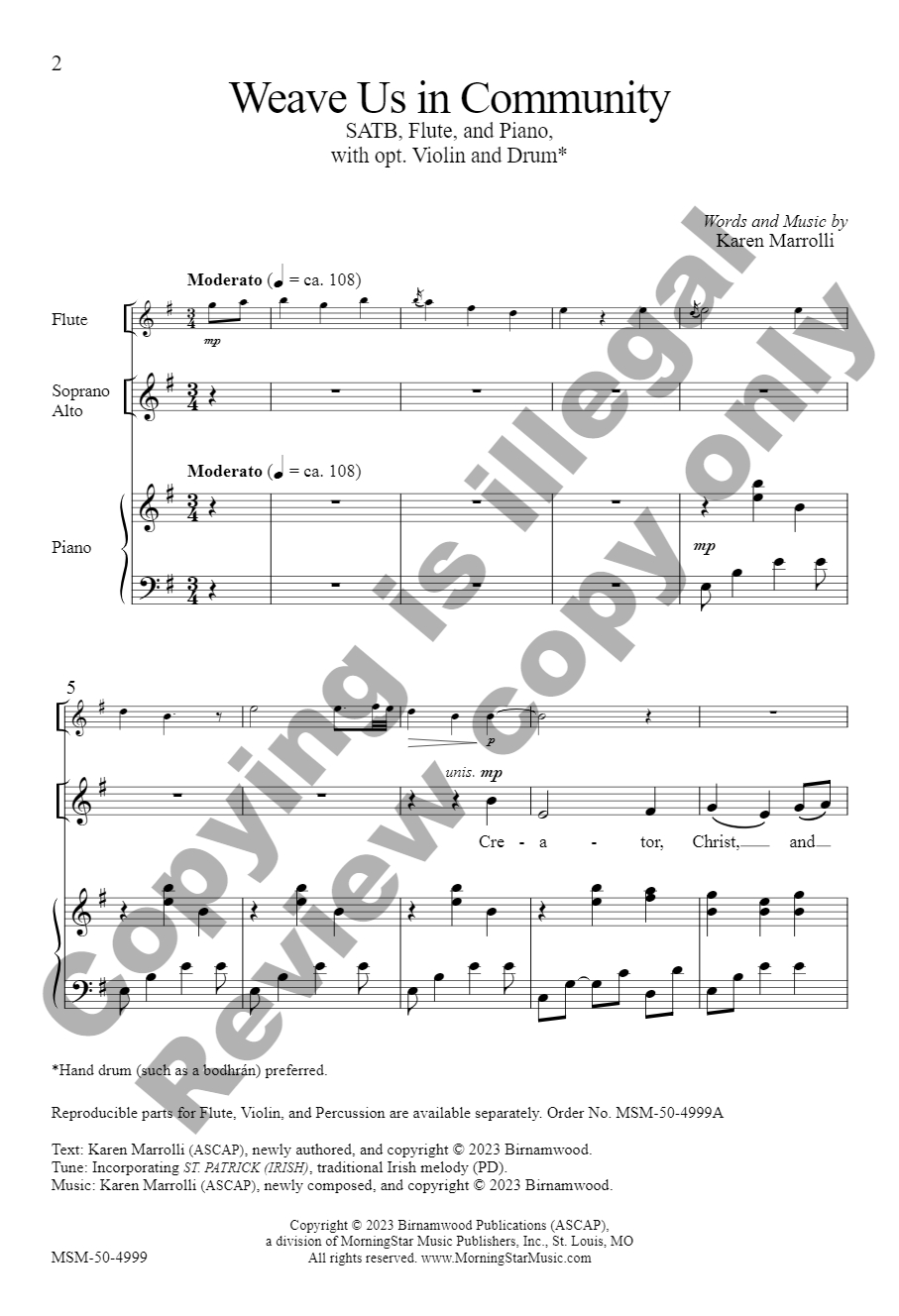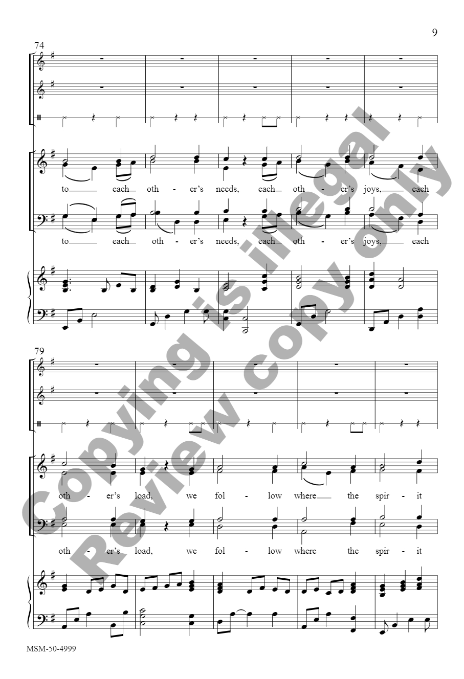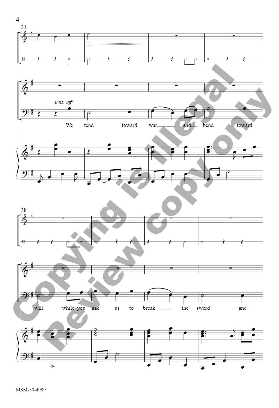 This setting incorporates the traditional Irish tune ST. PATRICK. The instrumental parts have the feel of an Irish folk song and the original text is a prayer for unity and peace.