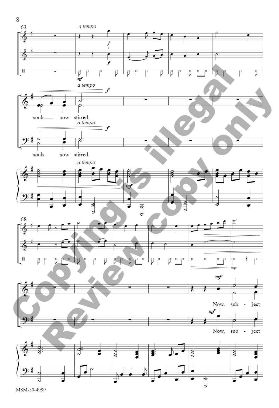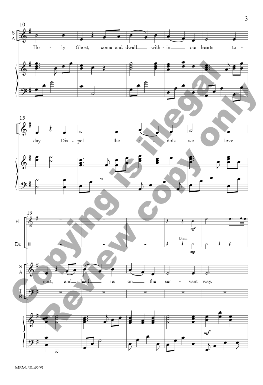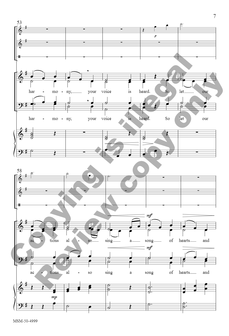 This setting incorporates the traditional Irish tune ST. PATRICK. The instrumental parts have the feel of an Irish folk song and the original text is a prayer for unity and peace.