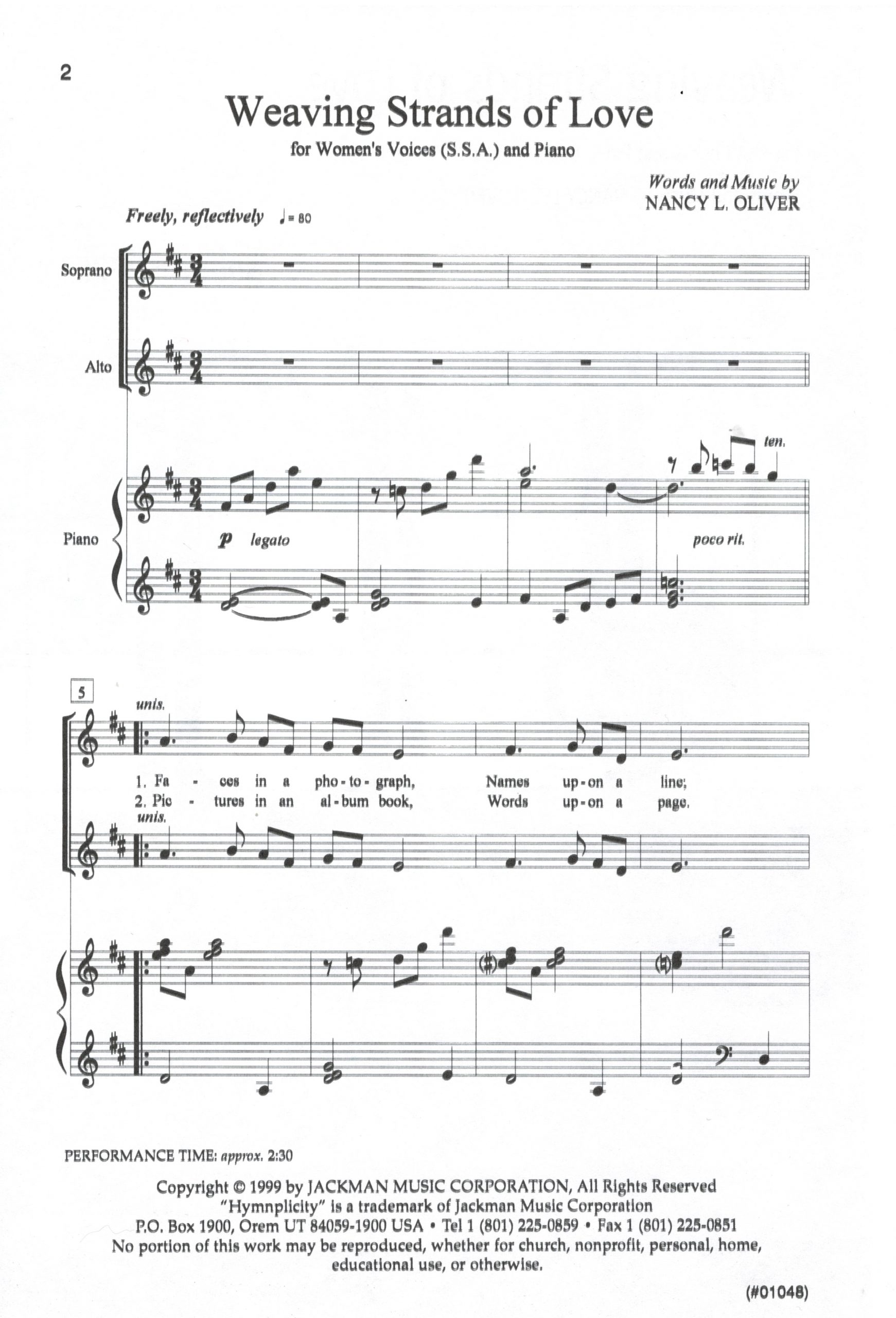 Choral anthem for women's chorus, teaching that we learn to love our ancestors as we learn about their lives.