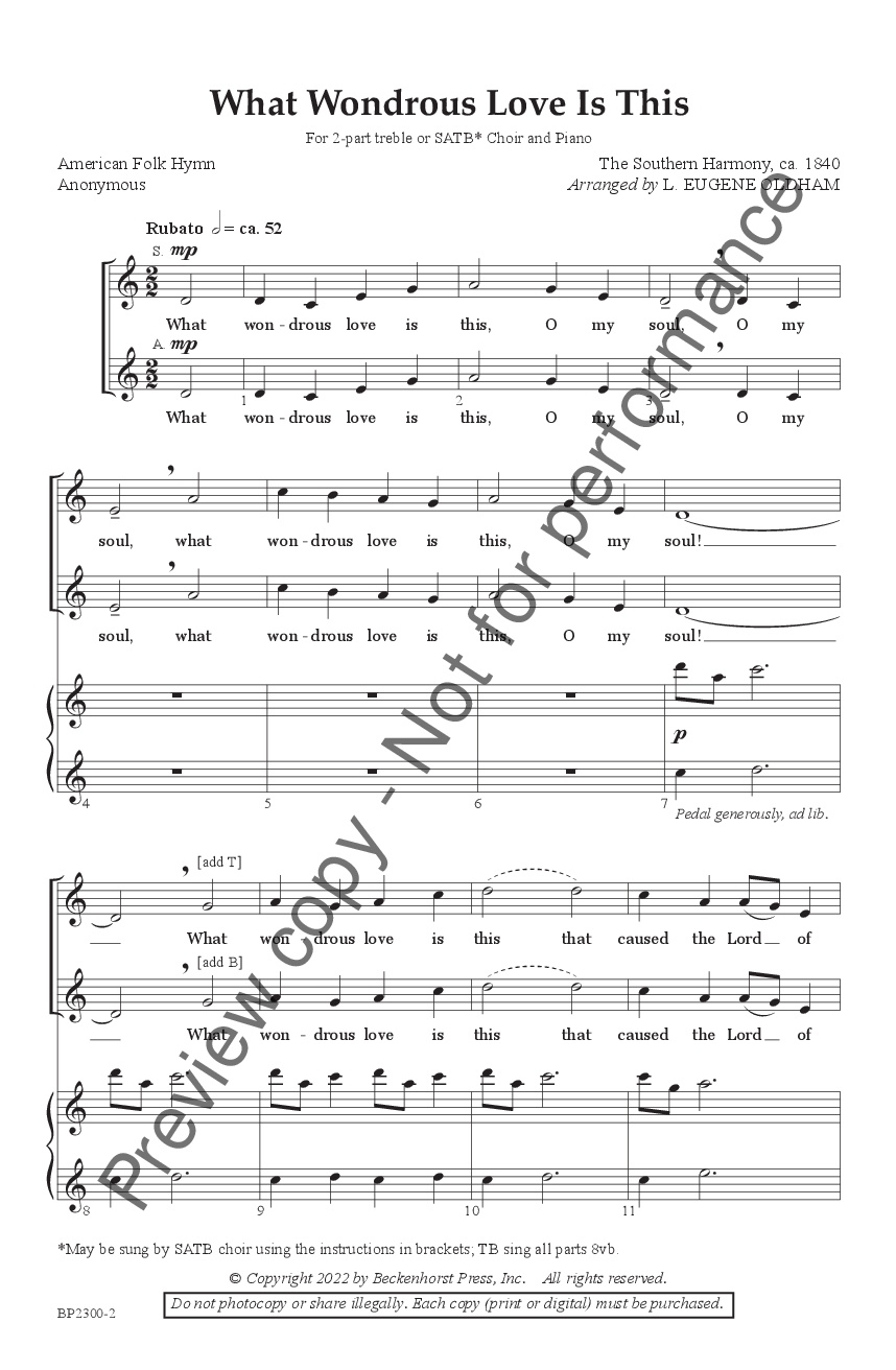 “What Wondrous Love Is This is about the mystery of divine love yielding to death in order to rescue the dying. It portrays sorrow alongside bliss, death giving way to eternal life, sacrifice leading to salvation. My goal in this arrangement was to evoke the sense of awe and wonder that these paradoxes, which are so central to the Christian faith, inspire.”