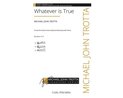 Conceived as a work for emerging choirs looking for a positive message and opportunities to develop musical skills within appropriate ranges. Whatever is True has close harmonies, optional a cappella sections, rhythmic vigor and offers many options for the growing choral ensemble. This work is a favorite with choirs and audiences a like.
