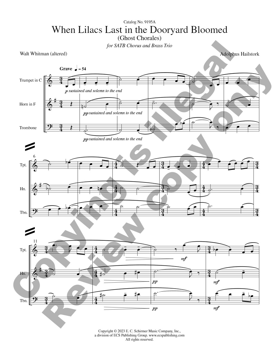 The new setting of the Walt Whitman text by noted composer Aldophus Hailstork provides a challenge for an advanced ensemble. The harmonic progressions and vocal treatments are adventurous and effective.