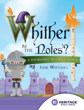 In a far-off Kingdom, sadness has overcome the land! A silent enchantment has befallen four villages resulting in the notes C, B, A, and G to be transformed into objects hidden throughout the Kingdom. Join these village on their quest to find the notes, restoring joyous recorder sounds to their Kingdom once again! Designed for young recorder students to demonstrate their knowledge of the notes, C, B, A, and G, this original renaissance-era musical features fun original recorder tunes and a cast comprised of four villages (classes or groups of students), a village leader (student or teacher) and a Jester (adult narrator.) The simple staging and costuming makes this an easy production to put together. Projectable images are included as the set as well as audio accompaniment tracks and sound effects. Your recorder students will love applying their skills in this comedic and exciting musical!