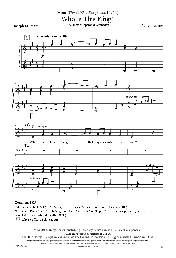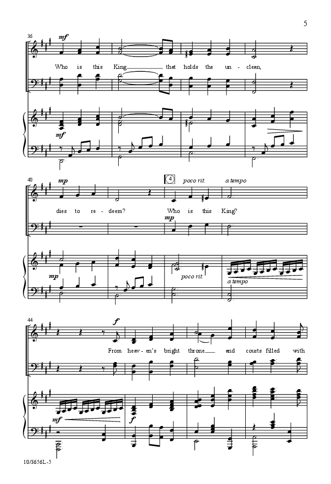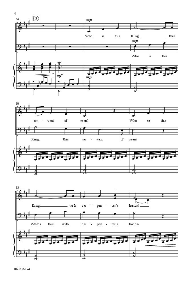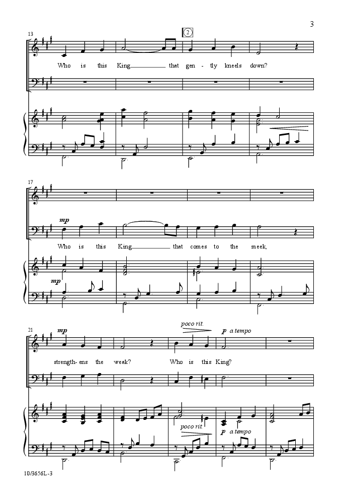 Wherever Jesus went, there were those who believed Him to be the Messiah and others who were convinced He was a fraud. This poignant anthem explores both perspectives by blending a haunting melody, dramatic musical moments and a compelling lyric while creating a piece which ultimately leaves the question to be answered by the listener: Who is this King?