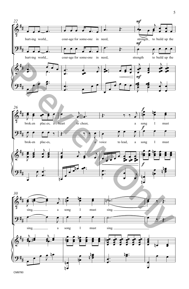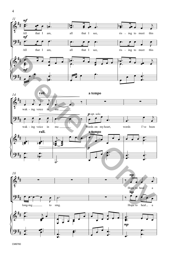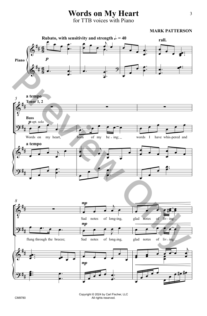 Every voice matters… and every voice in your choir matters! Patterson's compelling text is bound to resonate with both performers and audience members. His harmonic material is ever-evolving, containing shifts in tonality paired with a lilting 6/8 time signature.