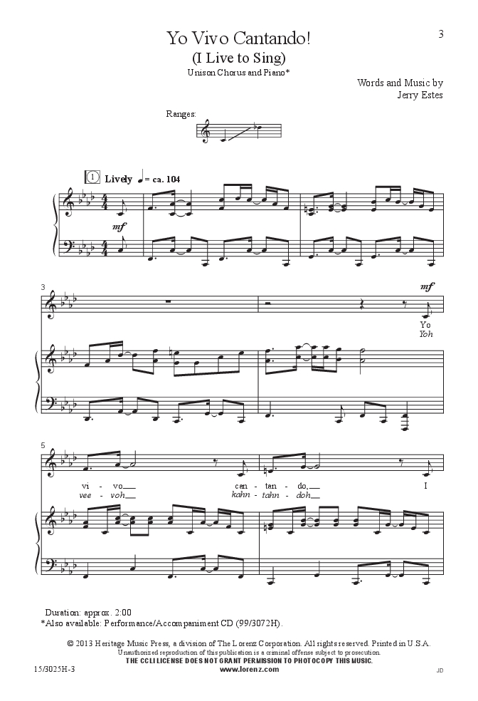 This exuberant original piece about the joys of singing boasts lively rhythms, a limited range, and catchy melodies that are easy to learn (the title phrase is its only Spanish text). It’s a terrific opener and will add a Latin flair to any program.