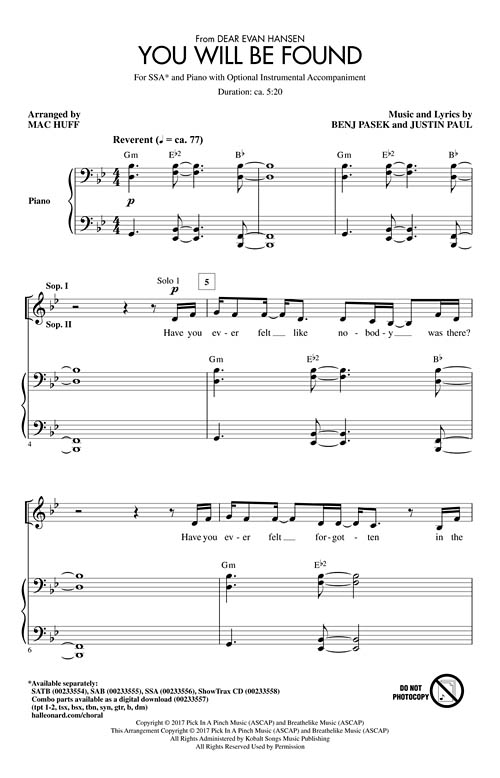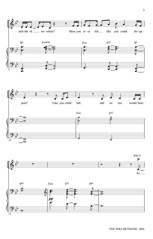 The powerful Act I closer from the Broadway hit musical Dear Evan Hansen explores the complexities of social connectivity and our need for respect and love. A perfect choral showcase for pop and concert choirs!